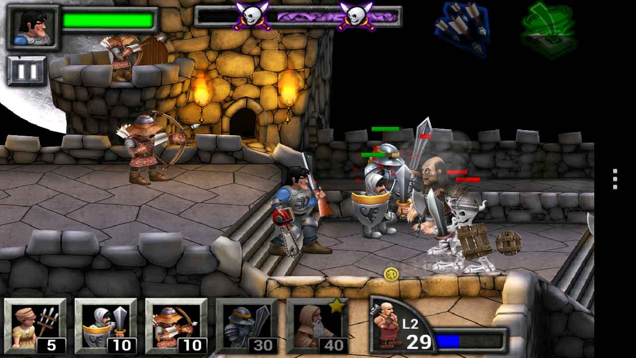 Во время боя игрок может вызывать подкрепления, активировать специальные умения и управлять героем напрямую. Это добавляет динамики и позволяет влиять на исход сражения в реальном времени. По мере прохождения уровней враги становятся сильнее, появляются боссы с уникальными атаками, требующие продуманной тактики.